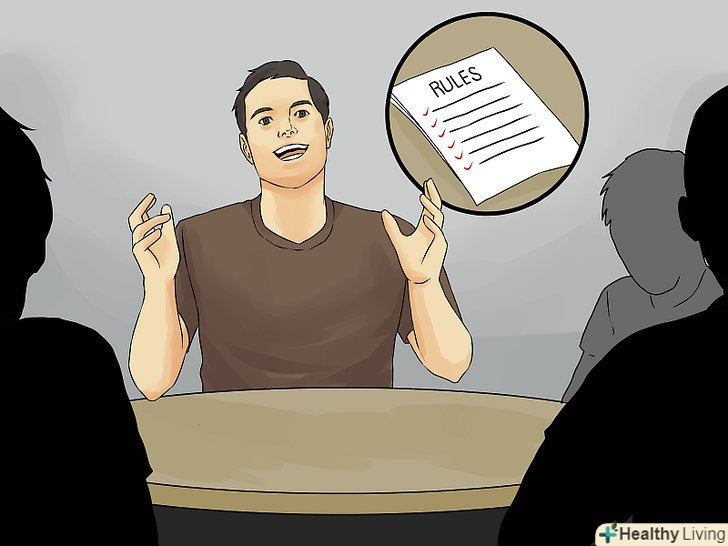 Подбайте про те, щоб всім було комфортно ще до початку гри.поясніть правила і суть гри. Скажіть друзям, що вони мають право відмовитися від участі в грі. Тим, хто згоден брати участь в грі, Запропонуйте сісти в коло. Ви можете сісти за стіл або на підлогу. Подбайте про те, щоб усім було комфортно.[2]