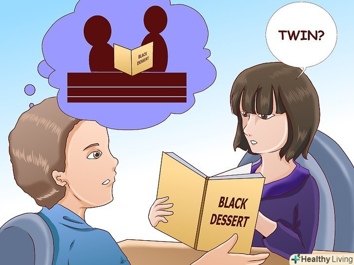 Випадково згадайте вашого Близнюка в розмові.як тільки ви знайдете жертву, ви повинні почати повільно вводити вашого Близнюка в розмову. Не треба підносити це як щось важливе. Просто скажіть щось на кшталт: "Наташа нещодавно розповіла мені про цей новий серіал...", після чого чекайте, коли людина почне питати хто така ця Наташа. Не кажіть щось на кшталт: "Наташа, мій близнюк, просто чудова," інакше все стане занадто очевидним. Знайдіть спосіб кілька разів згадати про вашому Близнюку в розмові, замість того щоб робити так, що ваш близнюк ні з того, ні з сього заявиться в будинку вашого друга.- Буде навіть краще, якщо в затії братимуть участь пара ваших друзів, які також випадково згадають про вашого близнюка. Чим більше людей роблять це правдоподібним, тим краще.