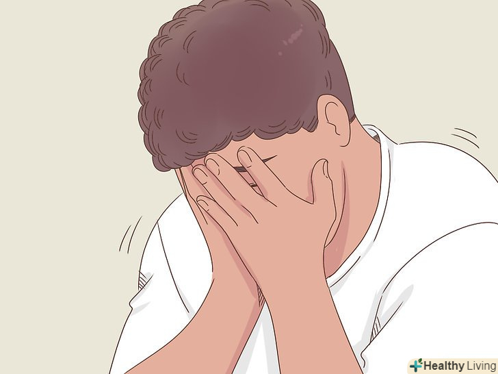 Уткніться обличчям в долоні іСмійтеся, якщо не можете сумувати.іноді буває важко визначити, сміється людина або плаче, якщо він робить це правильно. Уткнувшись обличчям в руки, трясіть плечима і спробуйте зробити очі трохи червоними, сильно потираючи їх руками, і не посміхайтеся, коли приберете руки.- Це найкраще працює на сцені, коли люди знаходяться не дуже близько і не можуть побачити сльози або ваше обличчя в деталях.
