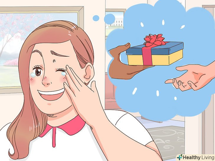 Плачте щасливими сльозами, якщо не хочете сумувати.спробуйте уявити речі, які змушують ваші очі наповнюватися сльозами щастя, наприклад, коли хтось зробив вам значущий подарунок або хтось торжествує перед лицем негараздів.[10]- Поки ви не посміхаєтеся, ніхто не зможе сказати, плачете ви від щастя або горя.