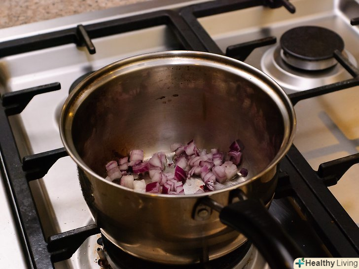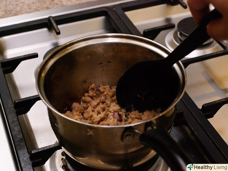 Додайте цибулю.покладіть нарізану цибулю в гаряче масло і смажте приблизно 5 хвилин, часто помішуючи, або поки він не стане м'яким і прозорим. Тимчасово витягніть цибулю з каструлі і покладіть його на сусідню тарілку.- Якщо ваша каструля досить широка, можна просто притиснути цибулю в одну сторону замість того, щоб повністю його вийняти. Головне, тримати варену цибулю окремо від м'яса в процесі його приготування.