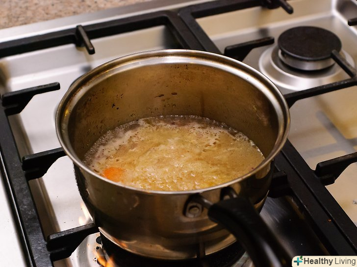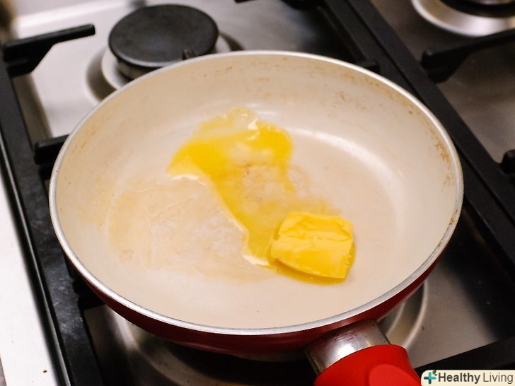 Вершкове масло розтопіть в окремій сковорідці.додайте вершкове масло на маленьку сковорідку. Розігрівайте на середньому вогні, іноді помішуючи, поки масло повністю не розтане.- Щоб заощадити час, ви можете пропустити інструкції для створення вашої власної каррі ру і використовувати готові покупні кубики. Вам буде потрібно близько 4 кубиків або 100 г, щоб замінити необхідну для цього рецепта кількість каррі ру. Додайте їх до каррі, коли ви будете готувати ру в домашніх умовах.[2]