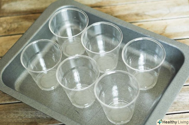 Поставте чисті пластикові стаканчики на піднос або деко.