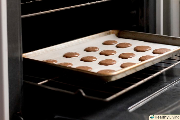 Розігрійте духовку до 140 градусів Цельсія.Половнкі мигдалевого печива випікають на дуже слабкому вогні, щоб вони піднімалися плавно і не тріскалися. Якщо ваша духовка має тенденцію перегріватися, ви можете випікати печиво зі злегка прочиненими дверцятами духовки.