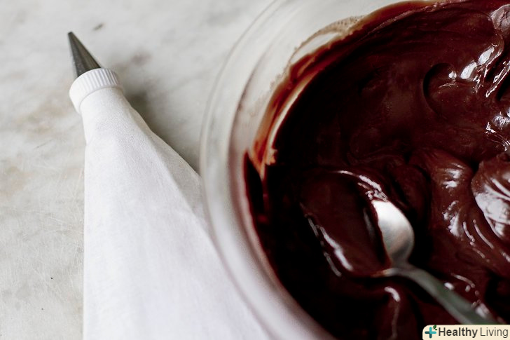 Ложкою перекладіть начинку в чистий кондитерський мішок.ви зможете видавлювати начинку на половинки мигдалевого печива. Встановіть на кондитерський мішок маленьку насадку для глазурі.