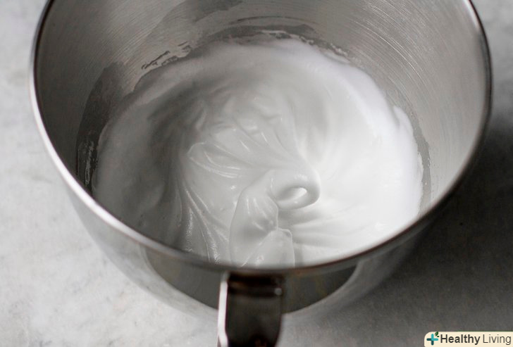Збийте рідкі компоненти.помістіть яєчні білки в металеву миску і збивайте (можна віночком) їх до утворення білих, жорстких піків. Переконайтеся, що миска повністю суха і чиста, інакше яйця не зіб'ються. Додайте цукор та інші рідкі інгредієнти, поки піки не стануть глянцевими і ще більш жорсткими.- Зараз в тісто можна додати смакові добавки, наприклад, ваніль, екстракт м'яти або мигдалю. Додайте приблизно чайну ложку свого улюбленого ароматизатора.