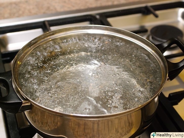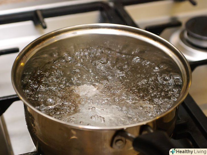 Закип'ятіть воду в спеціальній каструлі для консервування.банки в каструлю повинні поміщатися цілком. Покладіть на дно каструлі стійку для банок, щоб вони не ковзали по поверхні.- Якщо у вас немає спеціальної каструлі для консервування, то можете використовувати для цього будь-яку велику, важку каструлю. Не забудьте покласти що-небудь на дно, щоб банки не рухалися.