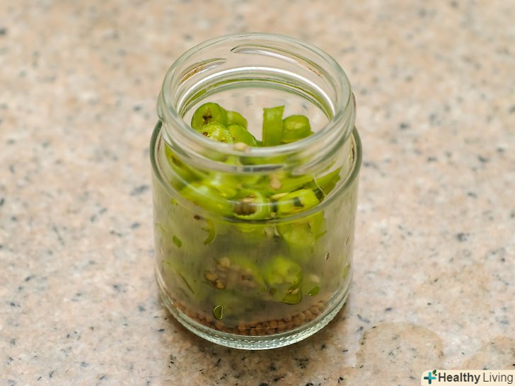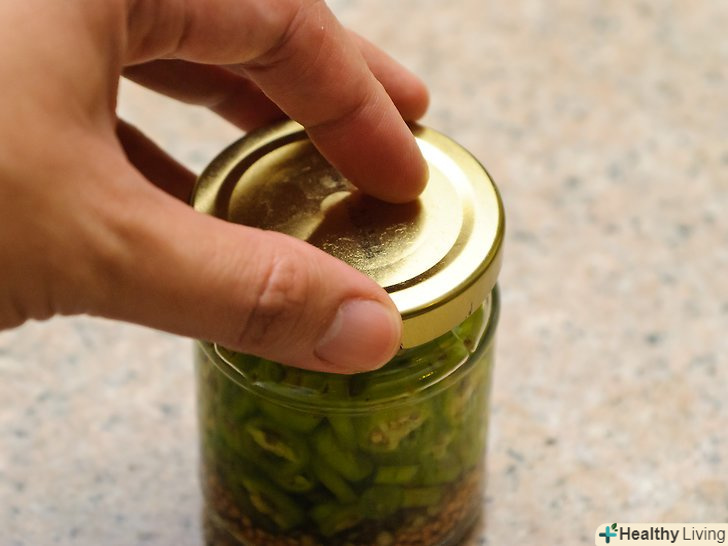Поставте халапеньо в холодильник.поставте контейнер з перцями в холодильник на 12-24 години. Перемішуйте перці кожні кілька годин, так як вони повинні гарненько замочитися.