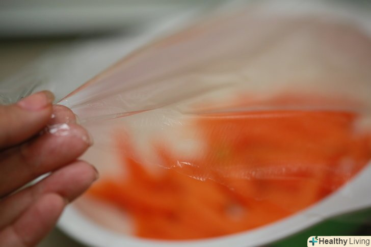 Покладіть моркву в миску, яку можна використовувати в мікрохвильовій печі.додайте столову ложку води і накрийте миску плівкою, яку можна використовувати в мікрохвильовці.