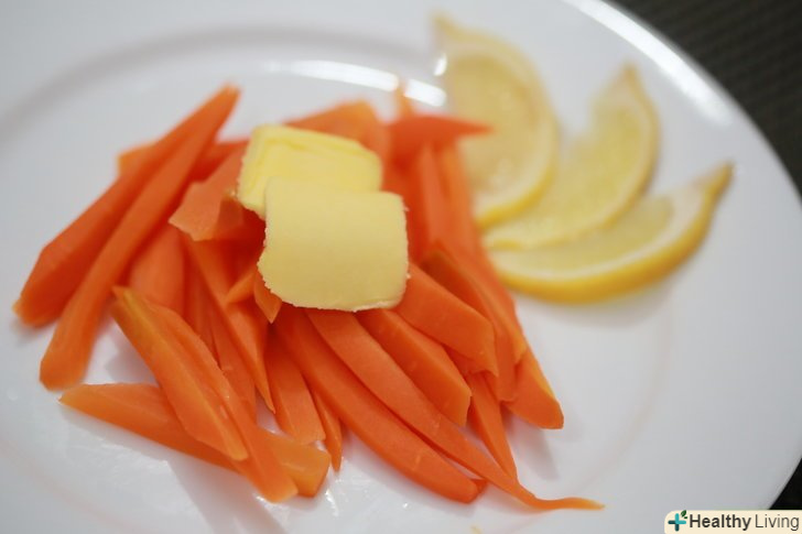 Додайте спеції або приправи.поки морква все ще гаряча, можете покласти будь-які добавки на свій смак. Дуже добре підійде чайна ложка розтопленого вершкового масла. Ви можете також злегка обсмажити моркву з невеликою кількістю оливкової олії, часнику і лимонного соку. Не забудьте посолити і поперчити.