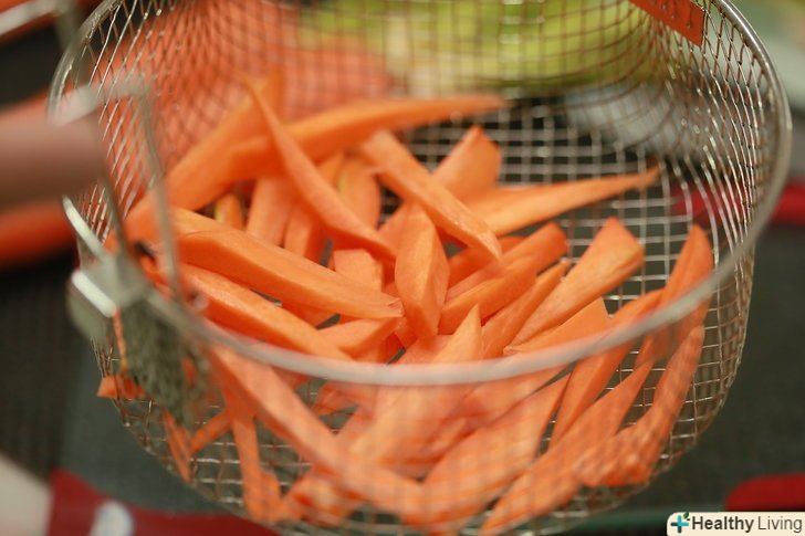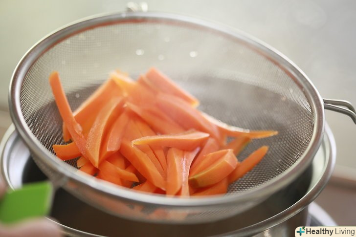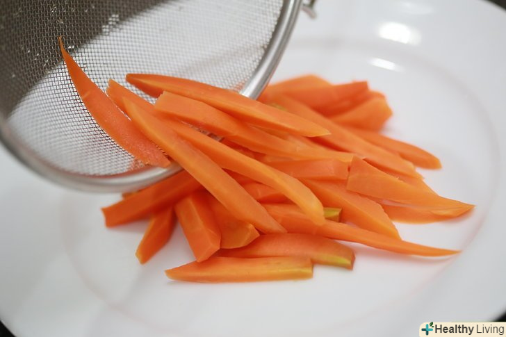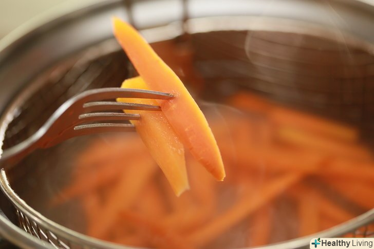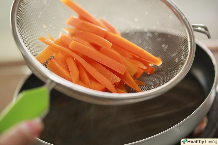 Покладіть моркву в кошик-пароварку.якщо у вас її немає, скористайтеся друшляком, який підходить за розміром.- Встановіть кошик над киплячою водою.переконайтеся, що кошик не стикається з киплячою водою. Якщо морква буде в воді, то вона звариться, а не приготується на пару.