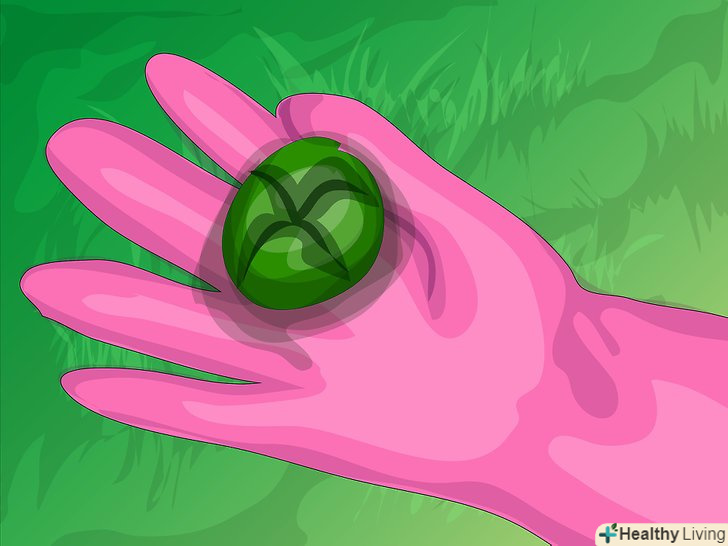 - Не чіпайте очі і рот рукавичками. Плями з волоських горіхів досить гострі і сильні і можуть обпалити очі або, можливо, навіть бути токсичними, якщо їх спробувати на смак. Не дозволяйте дітям робити прибирання волоських горіхів.