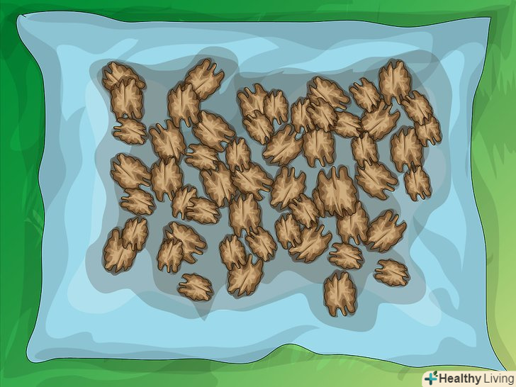 Розкладіть свої коричневі горіхи для висихання.ви можете викласти їх на шар газет, висихати вони будуть протягом декількох днів або довше. Деякі люди залишають їх протягом тривалого часу. Чим сухіші горіхи, тим легше видалити їх зерна. Тому Ви можете зберігати їх в оболонці в сухому місці, недоступному для білок. Не кладіть їх там, де їх можуть знайти білки. Вони заберуть все, що зможуть.