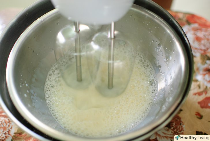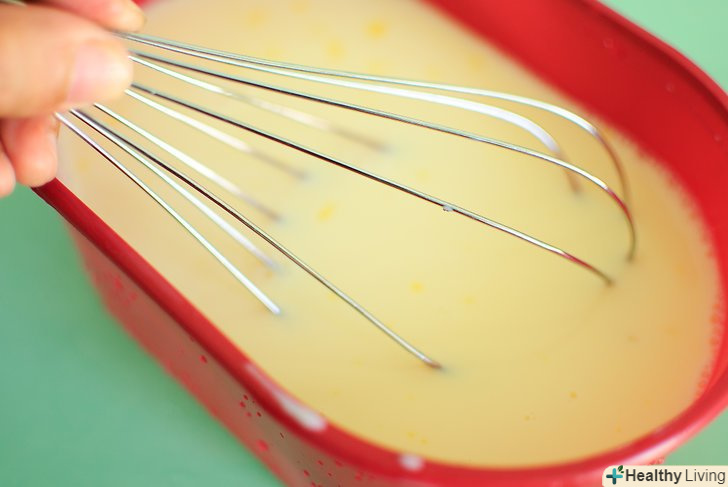 - Змішайте гаряче молоко в яєчній суміші.безперервно і повільно помішуйте суміш віночком і повільно додавайте молоко. Занадто швидке підливання молока може привести до того, що яйця перетворяться в яєчню!