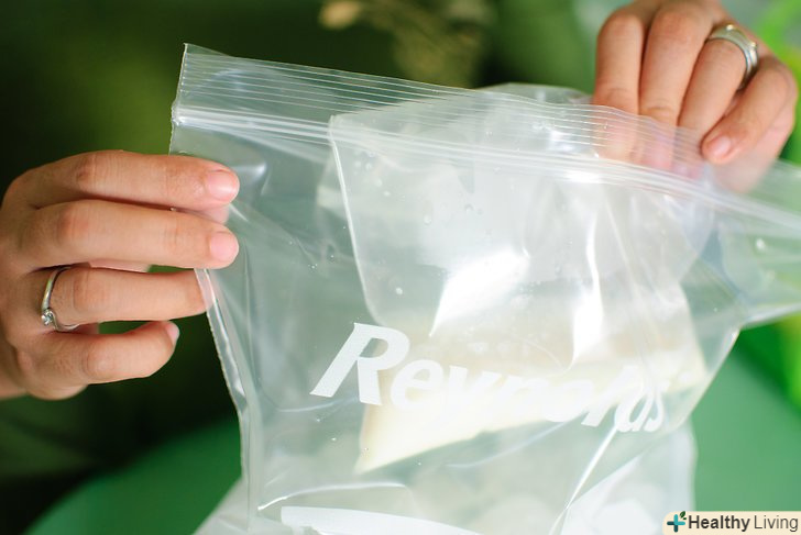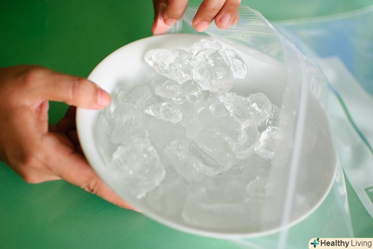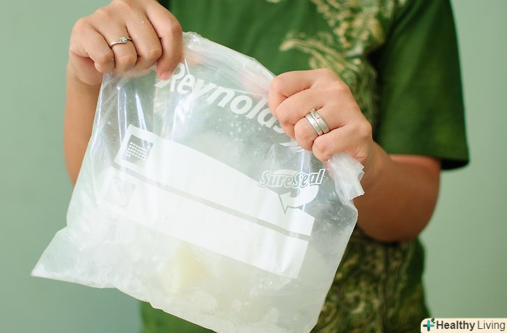 Пакетик побільше заповніть льодом і сіллю.візьміть приблизно дві чверті льоду, якщо можливо, роздрібніть і помістіть в мішечок великого розміру з кам'яною сіллю (також відома, як велика сіль). В ідеалі, великий мішечок буде приблизно наполовину заповнений сумішшю льоду і солі.