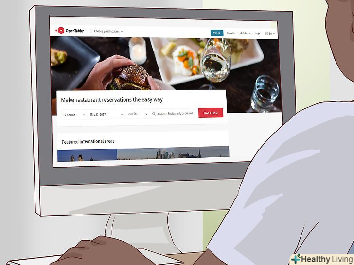 Використовуйте спеціалізований сайт або Мобільний додаток.якщо не вдається відшукати і зарезервувати столик прямо на сайті ресторану, то можна зайти на спеціалізовані сайти на кшталт gettable.ru або tomesto.ru. такі сервіси дозволять знайти заклади з урахуванням переваг за часом, датою, кухні і цінового діапазону. Ще можна встановити додатки для телефону на зразок Афіша-ресторани, в якому можна знайти відповідний ресторан і вказати свої дані. З такими додатками навіть не потрібно дзвонити по телефону.[2]