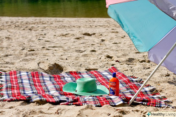 - Пляжні парасольки відмінно закриють вас від палючих сонячних променів. Добре закріпіть парасольку в піску, щоб його не віднесло вітром. Якщо вам нічим зміцнити його, глибоко вкопайте ручку в мокрий пісок або складіть навколо неї важкі сумки.