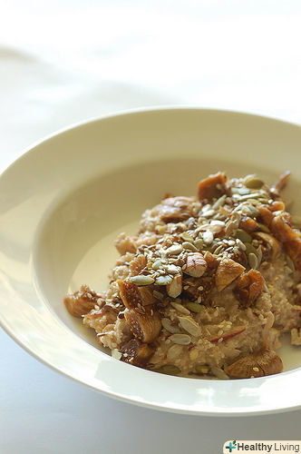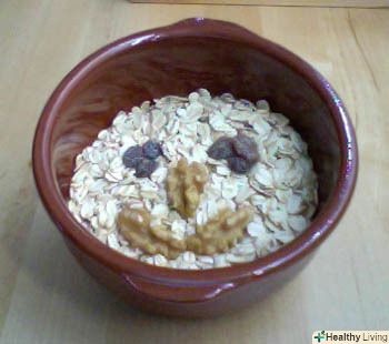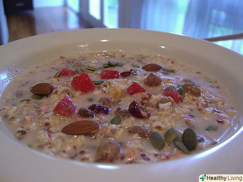 - Ви можете приготувати мюслі, основою яких, можуть бути горіхи і вівсяні зерна. Ви можете посипати свіжими і сушеними фруктами зверху, коли покладіть мюслі в тарілку. Ви можете використовувати приготовану страву протягом декількох днів.