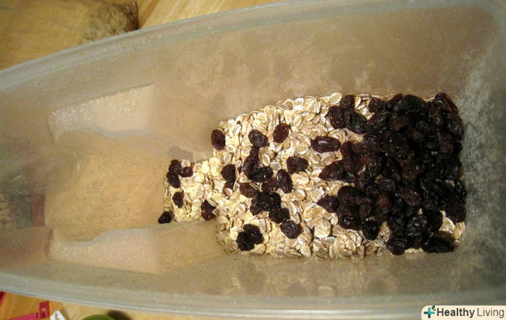- Підготуйте ємність для зберігання.мюслі необхідно зберігати в герметичному контейнері, завдяки чому вони завжди будуть залишатися свіжими. Знайдіть відповідну герметичну ємність (наприклад, пластмасовий контейнер з кришкою, велику закривається сумку - морозильник, або чисту скляну банку з кришкою, що закривається, і т.д.). Зберігайте мюслі в прохолодному, темному місці.
