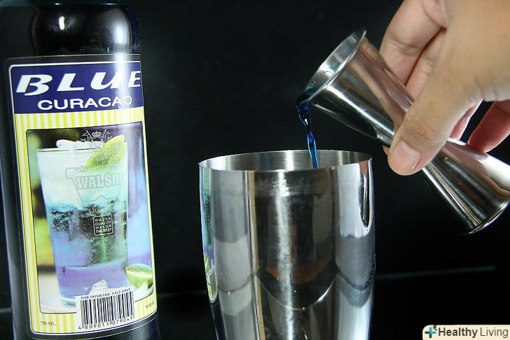 Налийте синій лікер в охолоджений коктейльний шейкер. Налийте синій лікер в охолоджений коктейльний шейкер.