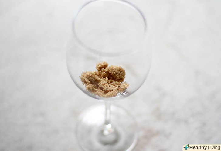 Поки вода нагрівається, візьміть відповідний келих, наприклад, для червоного вина, і покладіть в нього чайну ложку коричневого цукру.білий цукор не підійде, але можна використовувати мед.