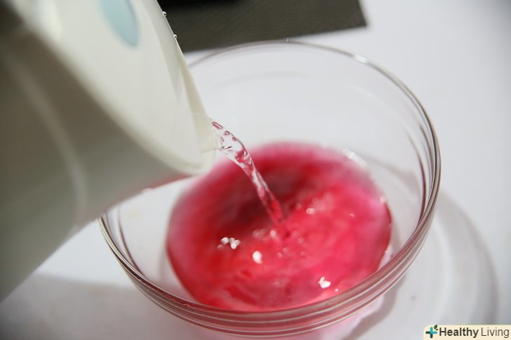 Візьміть миску середніх розмірів і налийте в неї окріп. розчиніть у воді желатин. Перемішуйте, поки порошок не розчиниться повністю.
