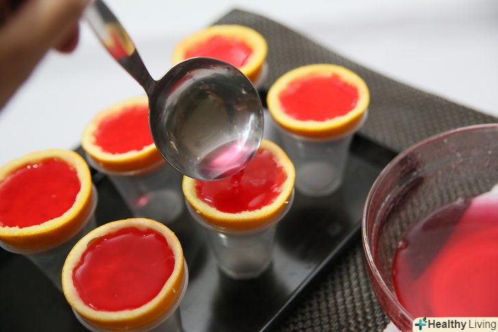 - Якщо желе добре застигло, розріжте половинки апельсина на кілька часточок, щоб зробити індивідуальні шоти.