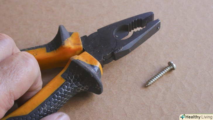 - Витягніть шуруп плоскогубцями. візьміться за шуруп плоскогубцями і потягніть його разом з пробкою. Замість плоскогубців можна використовувати також молоток-обценьки або вилку. Вам просто буде потрібно що-небудь, ніж можна підчепити головку шурупа. [13]
