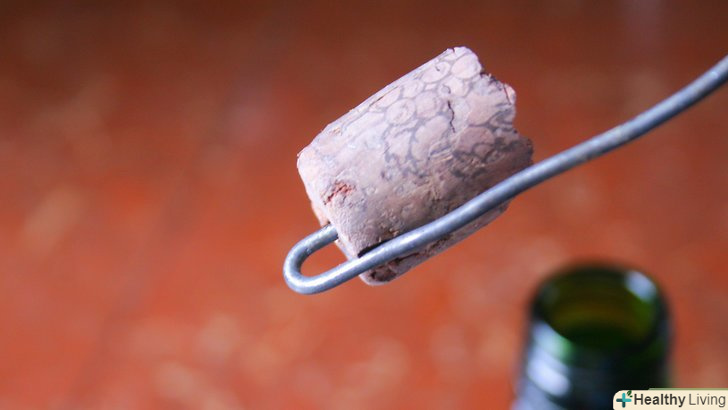 Знайдіть шуруп і плоскогубці. чим більше відстань між витками різьблення шурупа, тим краще. Простежте за тим, щоб все, чим ви будете торкатися до пробки, було чистим, інакше можна забруднити вино.- Загвинтіть шуруп в пробку. поставте шуруп в центр пробки і угвинтите його в пробку так, щоб він виступав з неї приблизно на 1,2 сантиметра. Можна спробувати зробити це голими руками або використовувати викрутку. [12]