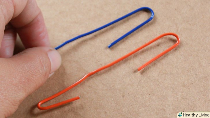 Візьміть металеві скріпки і ручку. частково розпряміть скріпки, але залиште на них вигин у вигляді латинської літери U. розігніть зовнішній кінець скріпки і залиште внутрішній кінець у вигляді букви U.