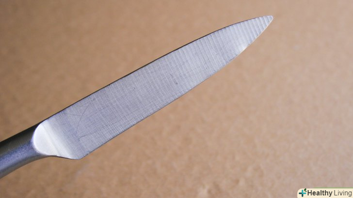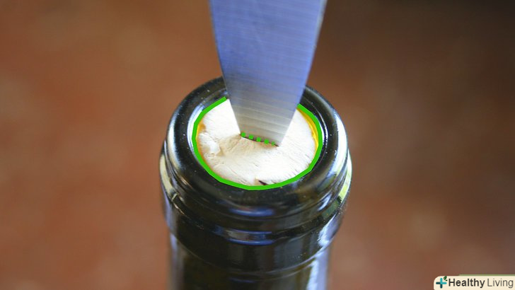 ЗнайдітьСкладаний або фруктовий ніж . лезо ножа повинно вільно проходити в шийку пляшки. Можна також спробувати використовувати пилкоподібний ніж-він дозволить краще схопити пробку. [5]- Будьте обережні при поводженні з ножем. Не поріжте!