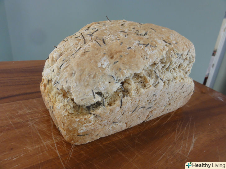 - Випікайте 55 хвилин або поки хліб не підніметься і ніж, встромлений в буханець, не вийде сухим.