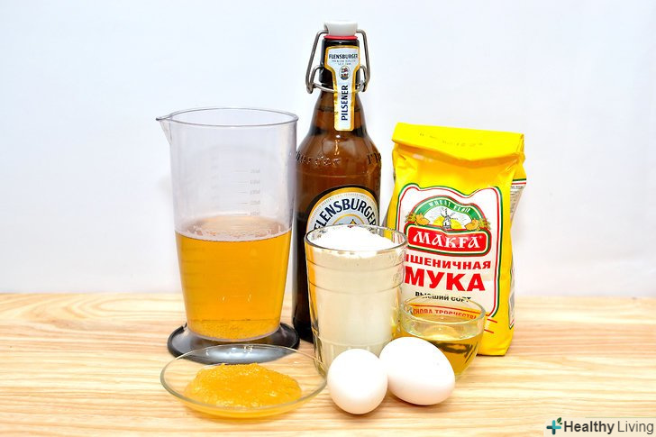 Влийте пиво, яйця і сироп або мед в миску. добре перемішайте.