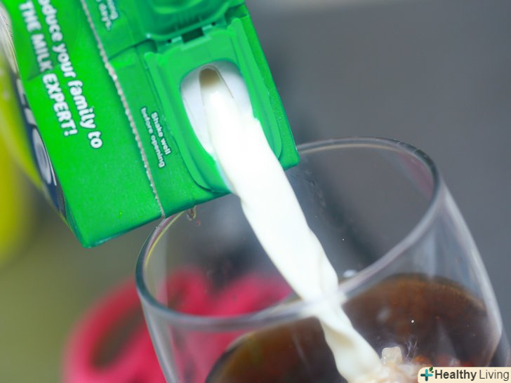 Додайте зверху молоко або нежирні вершки.дуже повільно налийте молоко або вершки зверху на напій. Вкрай важливо робити це повільно, так як це знижує ризик того, що молоко згорнеться. Вершки згортаються рідше, але якщо їх вливати швидко, вони теж можуть згорнутися. Можете відміряти 120 мл молока або просто налити стільки, щоб заповнити келих "Коллінз". Додайте зверху молоко або нежирні вершки.дуже повільно налийте молоко або вершки зверху на напій. Вкрай важливо робити це повільно, так як це знижує ризик того, що молоко згорнеться. Вершки згортаються рідше, але якщо їх вливати швидко, вони теж можуть згорнутися. Можете відміряти 120 мл молока або просто налити стільки, щоб заповнити келих "Коллінз".- Молоко легко перемішується з колою, але якщо ви будете вливати молоко дуже повільно, то воно утворює рівний окремий шар.[4]