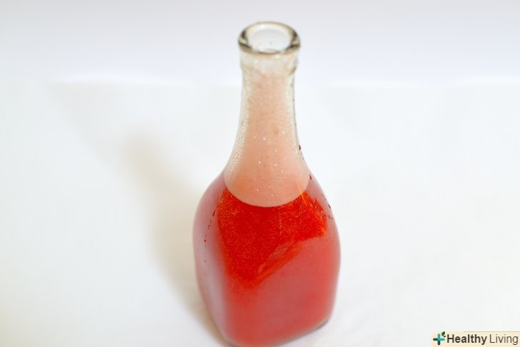 Вилийте сік в ємність для бродіння і накрийте її. обережно перелийте кавуновий сік в бутель на 4 літри або іншу велику ємність для бродіння. Потім накрийте верхню частину ємності тканиною і залиште на 24 години. [9]- В якості ємності для бродіння можна використовувати пластмасову тару з щільною кришкою, скляні або пластикові бутлі, а також барила і цистерни з нержавіючої сталі. Ключовою особливістю ємності для бродіння є його здатність запечатувати і утримувати всередині кисень.