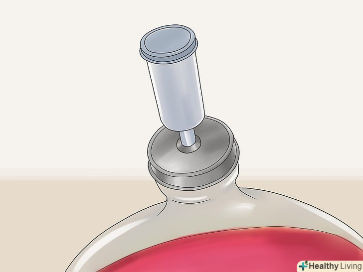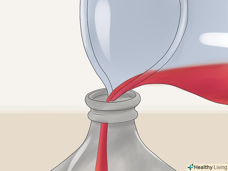 Простерилизуйте сифонову трубку розчином з води і метабісульфіту калію або піросульфітом натрію. ці речовини знаходяться у вільному продажу. Столову ложку метабісульфіту калію або піросульфіту натрію потрібно розчинити в 4 л води. [1]- Все, до чого буде торкатися вино, потрібно також простерилізувати таким розчином. Зазвичай слід сполоснути їм відро або пропустити рідину через трубку, потім вилити її в безпечне місце.