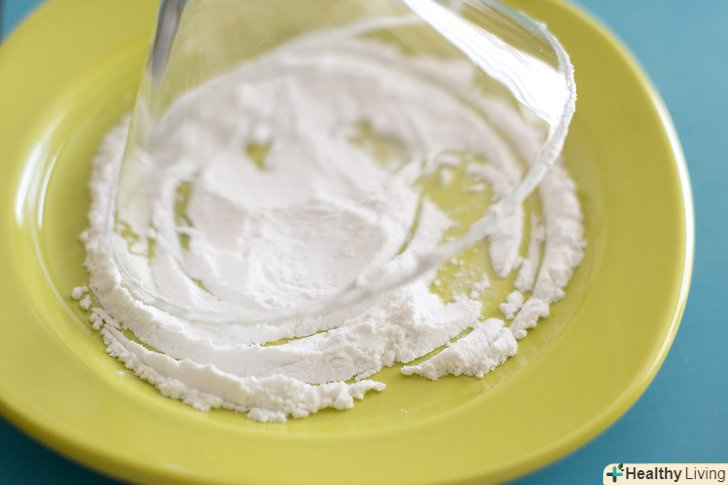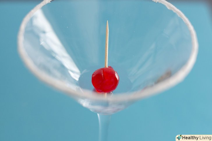 Прикрасьте ободок склянки.обідок склянки можна посипати такими приправами, як цукор, сіль, какао порошок, подрібнений шоколад або дрібно подрібнені пшеничні крекери або печиво. Щоб приправити ободок склянки, для початку необхідно насипати інгредієнт для прикраси в маленьку тарілочку або на піднос, а потім протерти ободом склянки чимось на зразок скибочки лимона, щоб зволожити його. Приправа пристане до зволоженої області. Потім необхідно поставити склянку на бік і вмочити ободок в приправу, прокрутивши стакан, щоб ободок покрився повністю. Також можна просто перевернути склянку догори дном і вмочити його в той чи інший інгредієнт, трохи прокрутивши його, щоб повністю покрити ободок приправою. Можна додати додаткове прикраса.