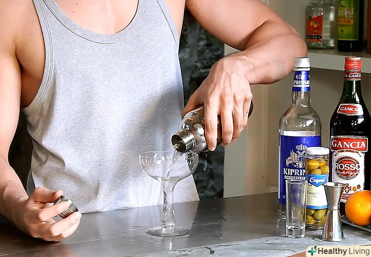 Приготуйте горілку з мартіні. мартіні - це класичний вибір і офіційний напій Джеймса Бонда 007. Змішайте, але не збовтуйте.- Змішайте 60-90 мл звичайної горілки і 30 мл сухого вермуту. Наповніть шейкер наполовину кубиками льоду. Добре збовтайте і влийте суміш в келиху для мартіні. Прикрасьте 3 оливками на шпазі.[15]