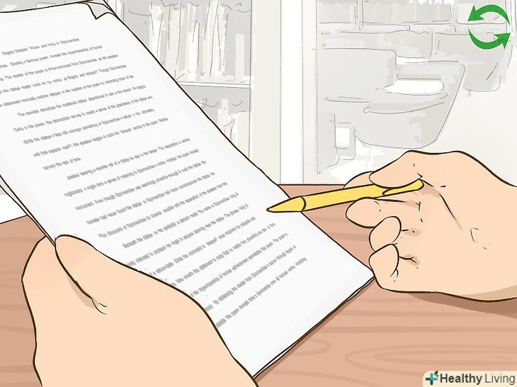 Дайте йому відлежатися.Ваша заява художника є важливою частиною дуже особистого. Після того як ви закінчите писати, відкладіть його на ніч, перш ніж перечитати знову. Це дасть вам можливість неупереджено поглянути на текст свіжим поглядом і відредагувати його, не змінюючи основної думки.[3]