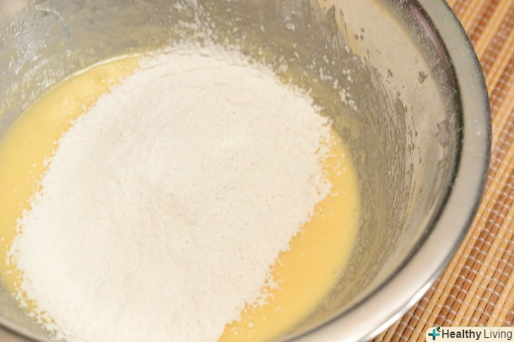 Додайте в сметаноподібну суміш 2 і ½ склянки борошна.збийте сіль, поки вона повністю не змішається з рідиною. Додайте в цю суміш дві столові ложки оливкової олії і одну чайну ложку солі. Вимішуйте все разом, поки тісто не буде однорідним.- Нехай тісто відпочине протягом п'яти хвилин.за цей час суміш загусне. Як тільки тісто відпочине п'ять хвилин, посипте плоску робочу поверхню борошном. Витягніть тісто з миски і покладіть його на посипану борошном робочу поверхню.