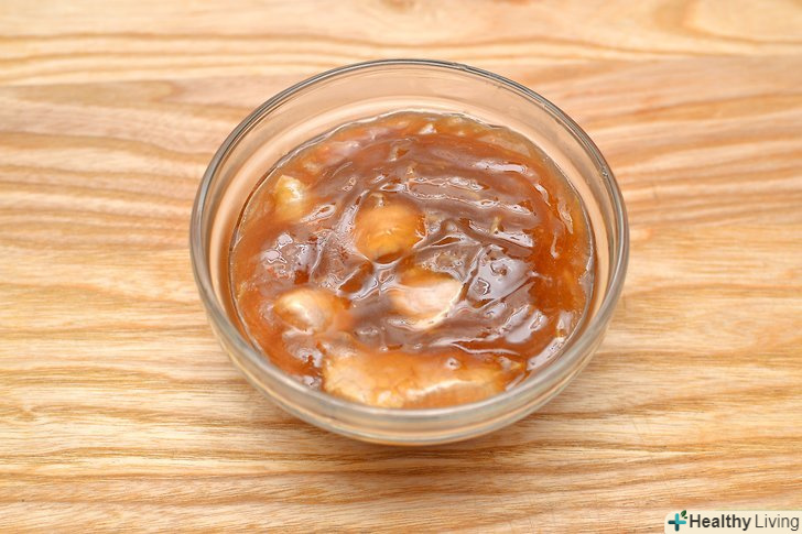 Змішайте 4 ст.л. (59,1 мл) соєвого соусу, 3 ст. л. (44,4 мл) білого або коричневого цукру, 1 ст. л. (14,8 мл) імбиру, 1 1/2 склянки (354.9 мл) бульйону за смаком і 1 ст. л. (14,8 мл) кукурудзяного крохмалю в мисці.