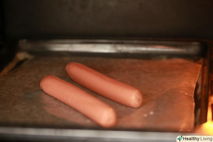 Увімкніть духовку і застеліть деко листом пекарської паперу.Розігрійте духовку до 200 °C. розкладіть сосиски, які ви хочете запекти, на деку. При цьому сосиски не повинні стосуватися один одного. Якщо все сосиски не поміщаються на одному деку, візьміть другий деко.[1]
