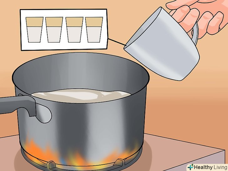 Розігрійте 4 склянки води.влийте воду в каструлю, поставте на вогонь і доведіть до кипіння.