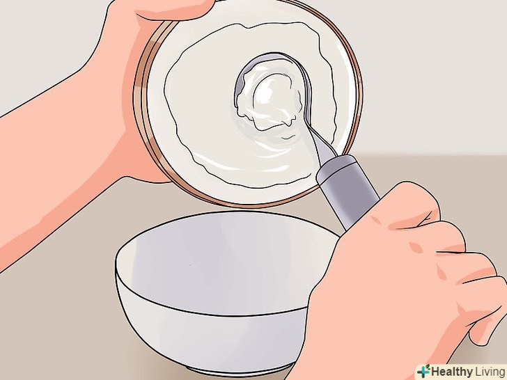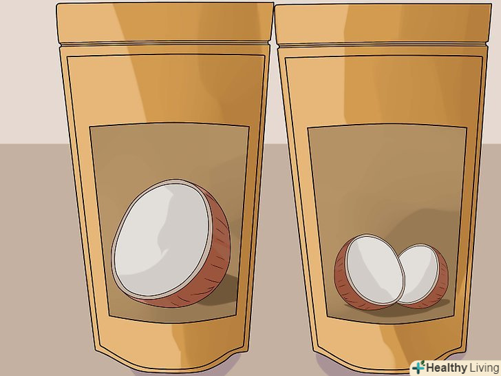 Візьміть сухий кокос.також ви можете придбати кокосові пластівці, що не містять цукру, переконавшись, що єдиний інгредієнт-кокос. М'якоть розріжте на маленькі шматочки і осушите, використовуючи осушувач. Процес займає 24 години. [1]- Ви можете поставити кокосову м'якоть в мікрохвильовку на маленьку температуру, щоб її осушити. Поріжте на маленькі частини, помістіть в спеціальну ємність для мікрохвильовки і готуйте протягом приблизно 8 годин (до моменту повного осушення) на низькій температурі.
