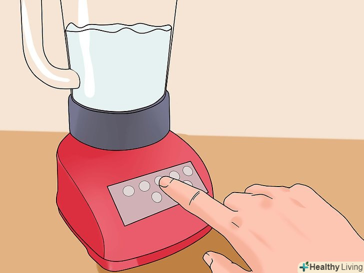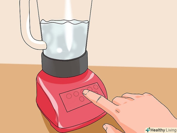 Змішайте кокос з водою.помістіть натертий кокос в блендер. Залийте кокос гарячою водою і закрийте кришкою. Увімкніть блендер і притримуйте кришку рукою. Подрібнюйте до отримання однорідної суміші.- Слідкуйте, що б гарячої води не було більше, ніж на половину ємності блендера. Якщо ваш блендер маленького розміру, розділіть все на 2 частини, тому що через заповненість блендера може злетіти кришка.
