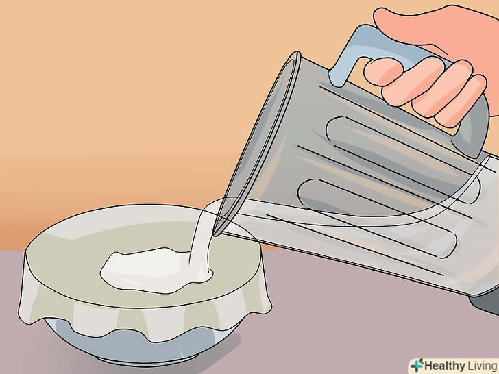 - Також ви можете дозволити м'якоті відокремитися від масла самостійно. Для цього помістіть рідину в чашу і накрийте її пластиковою кришкою. Залиште на 24 години при кімнатній температурі. Потім поставте в холодильник. Масло затвердіє і підніметься наверх. Після профільтруйте масло від рідини.[3]