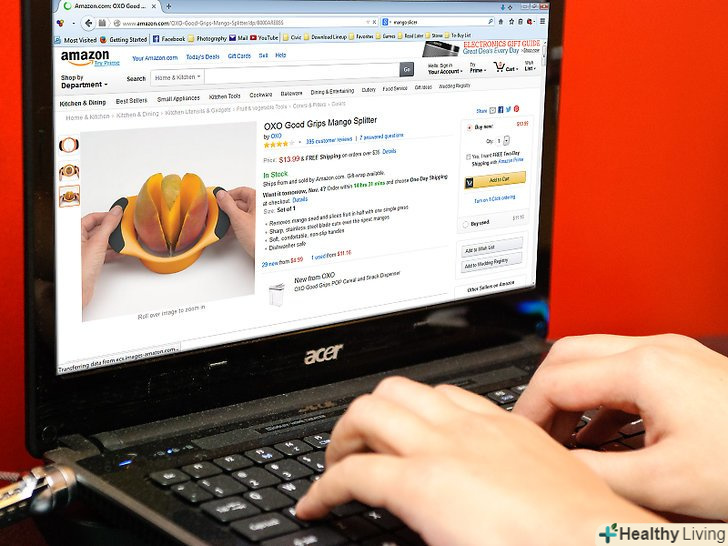 Купуйте ломтерезку для манго від інтернет-дистриб'ютора або кухонного магазину, якщо ви плануєте дегідратувати велику кількість манго.їх розрізання липкий процес і ломтерізка для манго знизить ваші шанси порізатися.