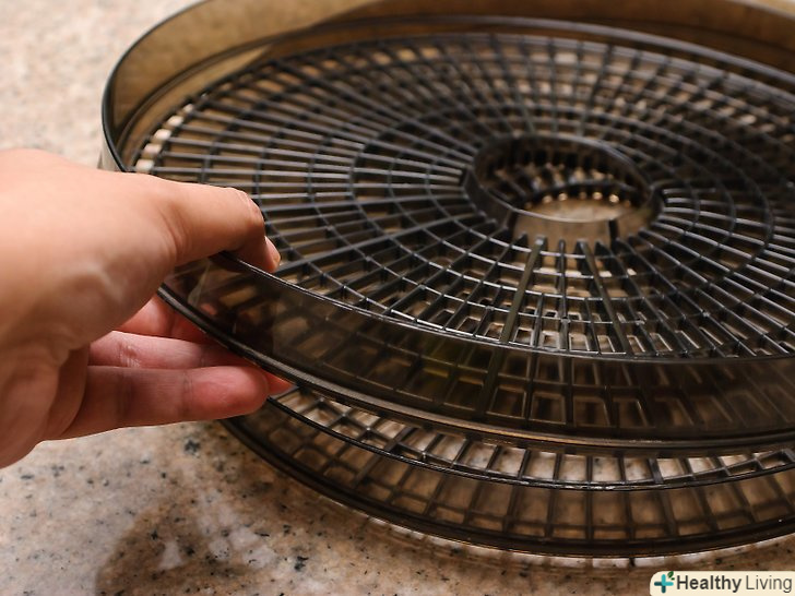 Вийміть дегідратуючі лотки з дегідратора.намагайтеся не займати занадто багато часу між нарізкою і розміщенням дегідратуючих лотків всередину, так щоб ви могли зберегти поживні речовини в свіжих фруктах.