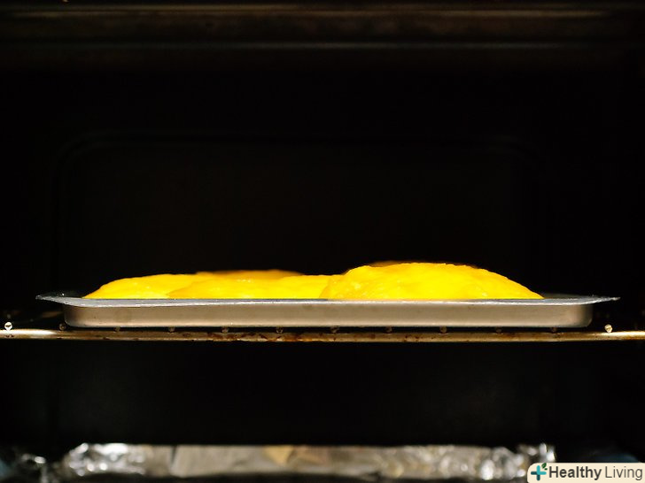 Якщо ви вибираєте робити в духовці, складіть манго на деко, викладене пергаментним папером, і поставте на найнижчий рівень.не закривайте двері в духовці, щоб циркулював потік повітря. Дегідруйте 10-14 годин.