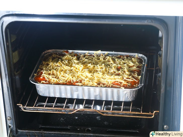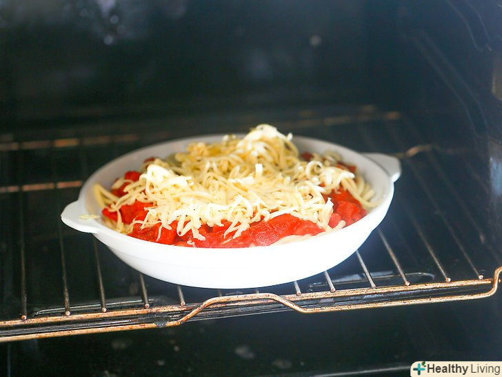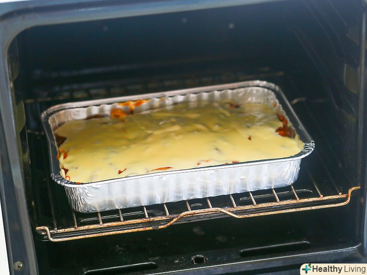 Поставте в духовку.готуйте 10-15 хвилин при температурі приблизно 180 º C. Слідкуйте за процесом; страва готова, якщо його поверхня почала підрум'янюватися і пузиритися.